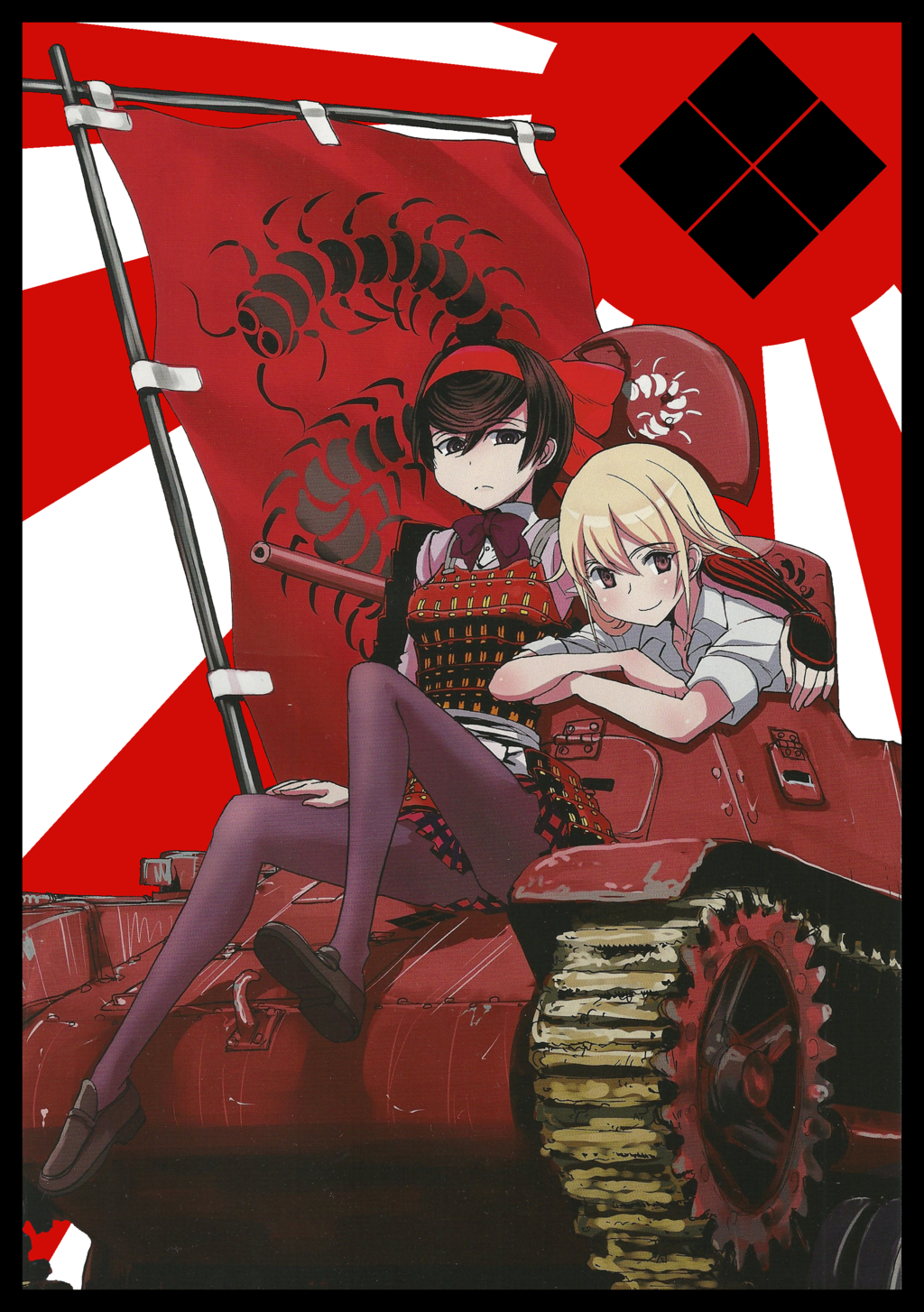 But then, in September of 2014, ‘Girls und Panzer: Ribbon no Musha’ (known in English for the moment as Girls und Panzer: Ribbon Warrior) was released, written by Takaaki Suzuki and drawn by Takeshi Nogami. Our heroes this time are Shizuka Tsuruki and Rin Matsukaze. Shizuka has very little experience with tankery but starts learning fast when Rin brings it up and adds her own flavour to the mix as she is a big fan of warring states era Japan and begins to see her Type 97 Te-Ke as her own cavalry horse. Rin, on the other hand, is the driver and quickly gets to learning all about the Te-Ke to the point where she knows where to find the incredibly rare upgrades for it.